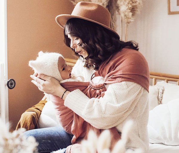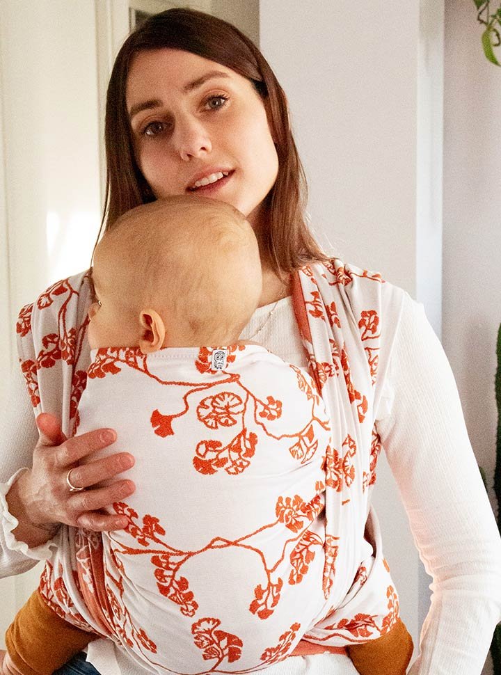 L’idée du portage en écharpe est de redonner au nouveau-né les mêmes sensations qu’il connaissait dans le ventre de sa maman. Son bercement, sa chaleur, son rythme cardiaque.